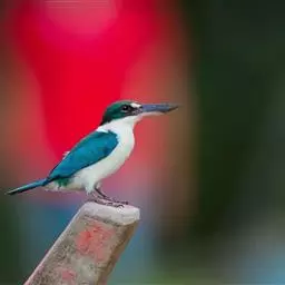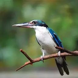 白领翡翠:有50个亚种。体长18厘米,体重35-40克。是一种蓝白色翡翠鸟。…