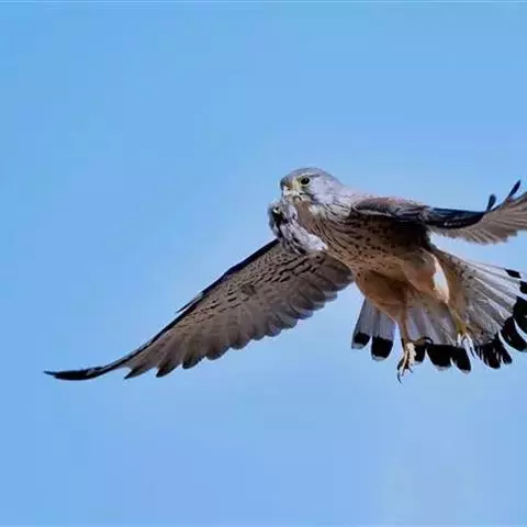 燕隼:是隼科、隼属的鸟类。体长约36厘米,体重140-340克。体形比猎隼、游隼等都小,为小型猛禽,…