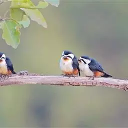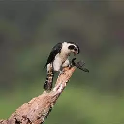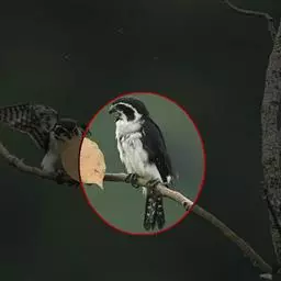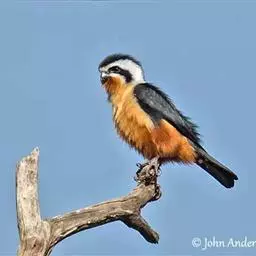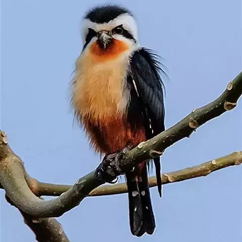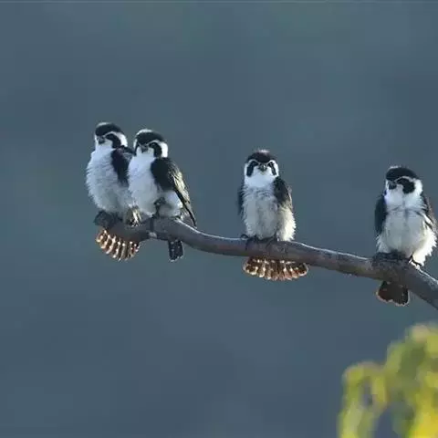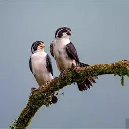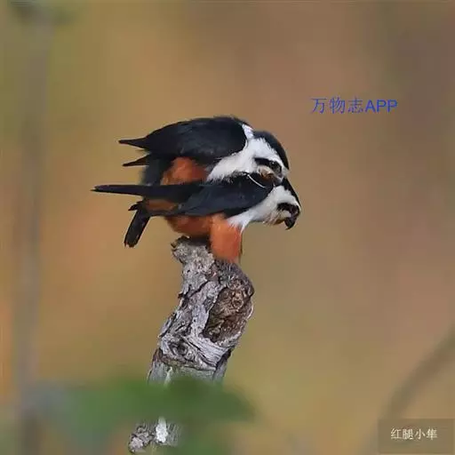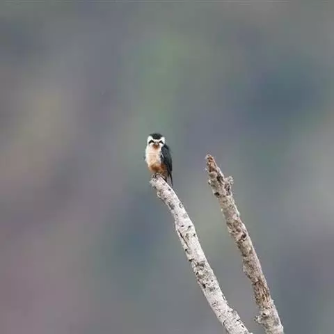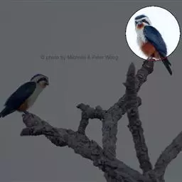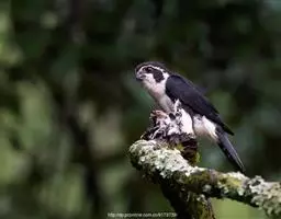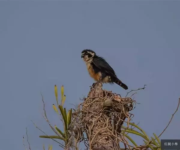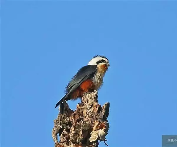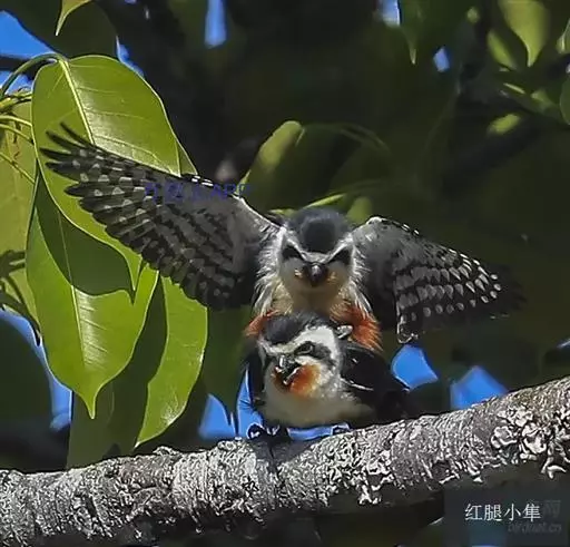 红腿小隼(学名:Microhierax caerulescens):属于隼形目隼科,几乎与麻雀一样大,是世界上最小的猛禽之一。有2个亚种,典型特征为前额为白色,眼睛上有一条宽阔的白色眉纹,往后经耳覆羽与上背的白色领圈相连,颊部和耳覆羽为白色,从眼睛前面开始有一条粗著的黑色贯眼纹经过眼睛斜向下到耳部。