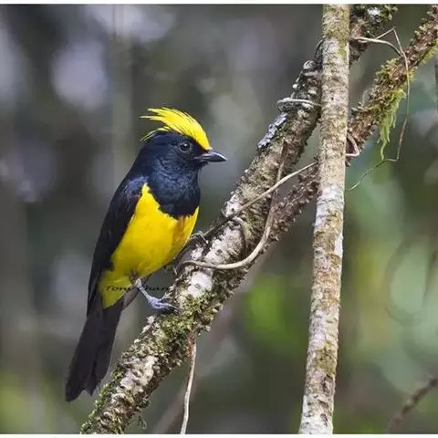 冕雀(学名:Melanochlora sultanea):共有4个亚种。体长20-21厘米,体重34-49克。具蓬松的黄色长型冠羽。雌鸟似雄鸟,但喉及胸深橄榄黄色,上体沾橄榄色。不会被误认的体大的黄色及黑色山雀。混群栖于原始林及次生林的林冠层,以大型昆虫为食。分布于印度次大陆,中国的西南地区、中南半岛和东南沿海地区。