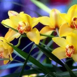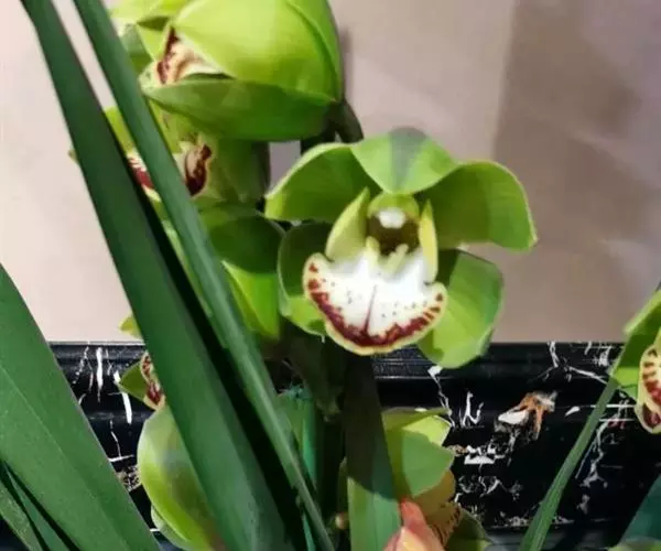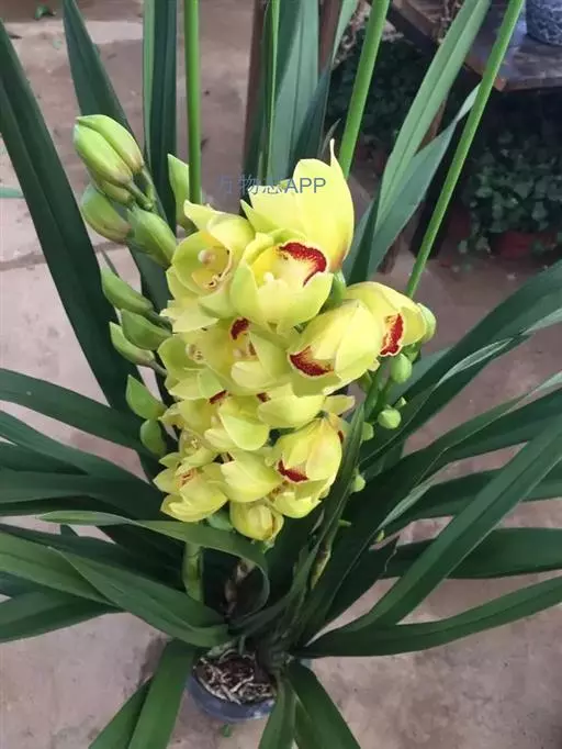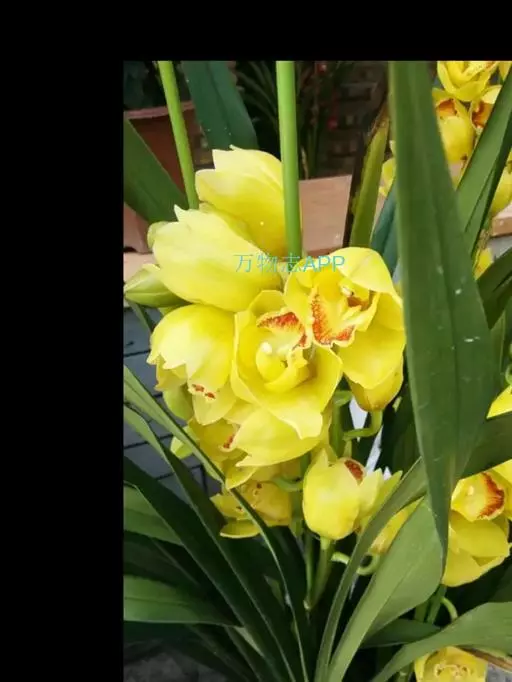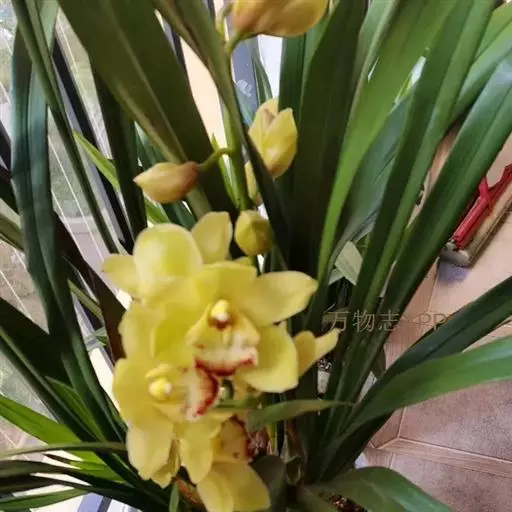 3.大花蕙兰花期养护:开花期最适温8℃至15℃,不能放于高温干燥的暖气旁边,花期3天浇水一次,长时间2℃至3℃的低温花则发生冻害,花苞变黄,不能开放,观赏期50至80天。