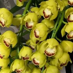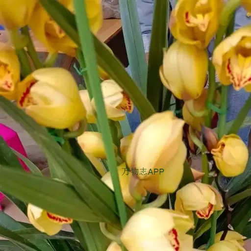 大花蕙兰又叫虎头兰、喜姆比兰和蝉兰。兰科、兰属植物。原产于印度、缅甸、泰国、越南和中国南部等地区的兰属(Cymbidium)中的一些附生性较强的大花种和主要以这些原种为亲本获得的人工杂交种。大花蕙兰,是对兰属中通过人工杂交培育出的、色泽艳丽、花朵硕大的品种的一个统称。兰属植物约48种,用来作杂交亲本的原生种有近20种,主要是大花的附生类以及少量的地生类。