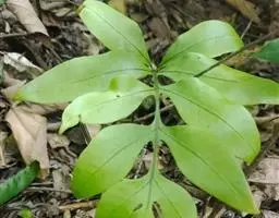 叶远生;叶柄禾秆色,光滑无毛;叶片通常羽状深裂,少有单叶不裂或3裂;裂片通常3-5对,披针形,渐尖头,边缘全缘,长约12-18厘米,宽约2-2.5厘米。侧脉和小脉均不明显,小脉网状。叶近革质,两面光滑无毛。