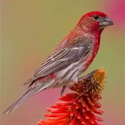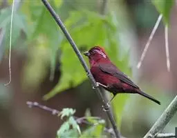 酒红朱雀小型鸟类,体长13~15厘米。雄鸟通体深红色,头部深朱红或棕红色,下背和腰玫瑰红色,…