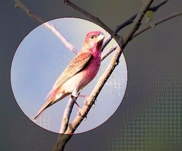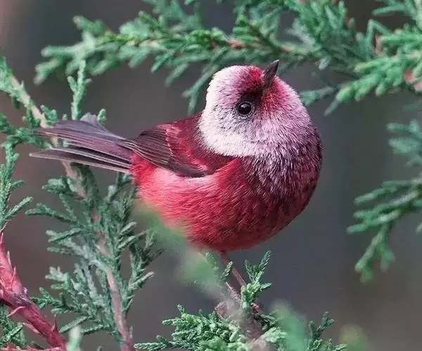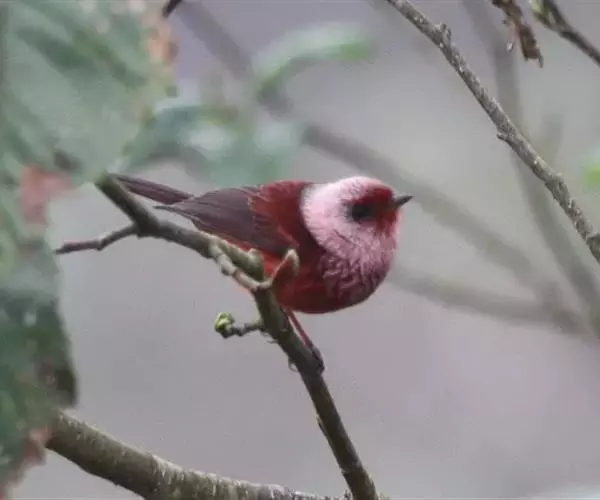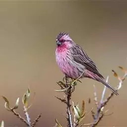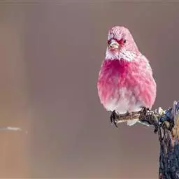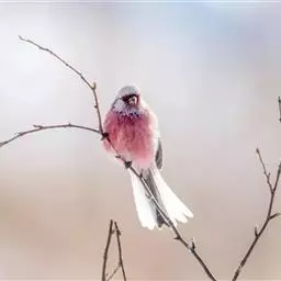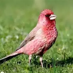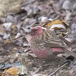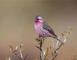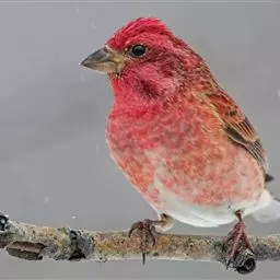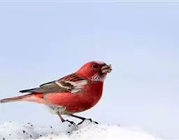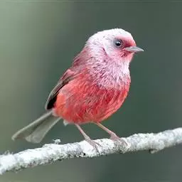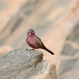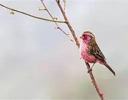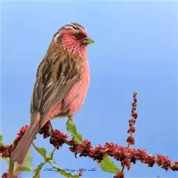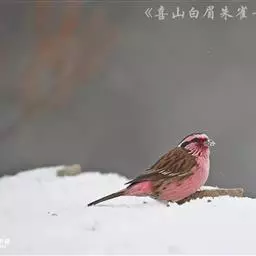 藏朱雀:全长约17-18厘米。雄鸟头部深红色具光辉,喉部暗红色具白色点斑;背部灰白色,各羽具玫瑰红…