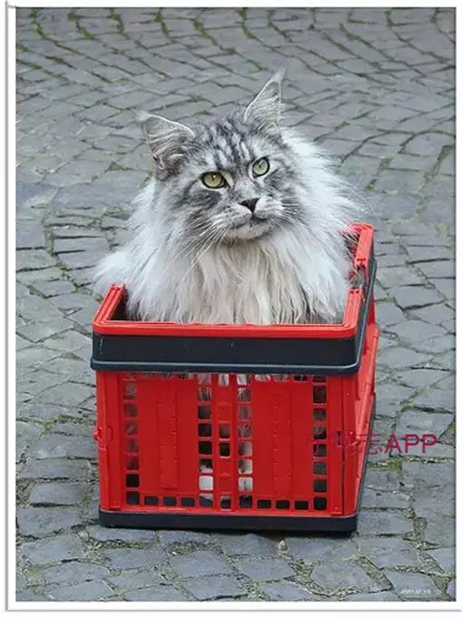 原本是工作猫的缅因库恩猫,结实且刻苦耐劳,能忍受恶劣的天气,它最特别的是以拥有一身顺滑,而浓密的披毛。它和挪威森林猫并无血缘关系,但长相极为相似。头形中等阔度,嘴部呈方形,高的颧骨。下巴强壮结实,与上唇及鼻子成一直线,侧面看去,下巴的轮廓几近正角,鼻子挺直,没有鼻节。耳朵大而且长满毛,大大的眼睛,两眼距离宽。中至大的身型,强壮,胸部宽。雌猫一般比雄猫细小。长长的尾巴配以飘逸如皮草的长毛。披毛厚而且浓密,前胸的毛较短,而背后和腹部及大腿的毛则较长,毛质如丝一般,顺滑的向下飘。缅因库恩猫有多种的毛色,包括纯色,斑纹,双色,三色,银影色,玳瑁色等等。
