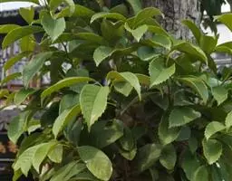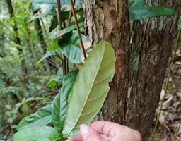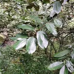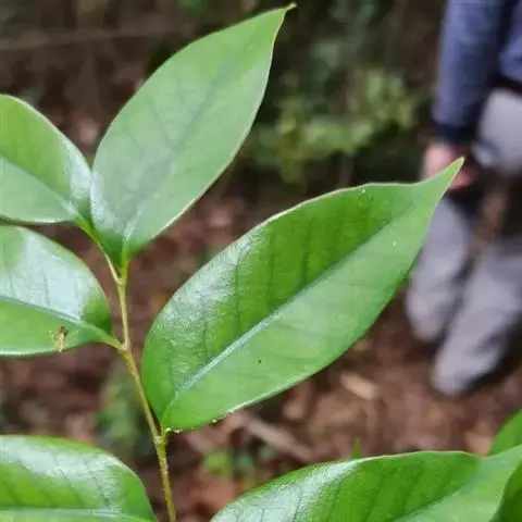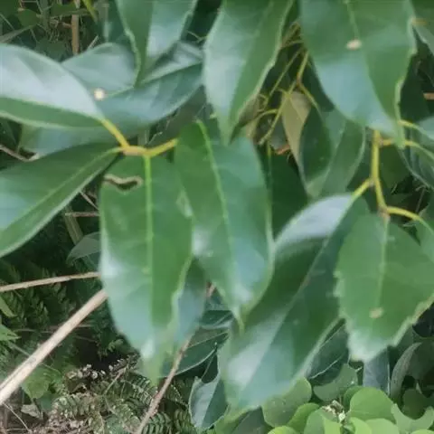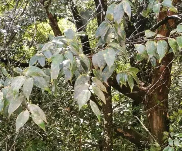 乔木,高达20米,胸径50厘米,大树的树皮纵深裂,厚达1厘米,块状剥落,小枝有皮孔甚多,枝、叶均无毛。叶革质,卵形,披针形或长椭圆形,长5-13厘米,宽1.5-5.5厘米,顶部长渐尖,常向一侧弯斜,基部一侧较短或甚偏斜,且稍沿叶柄下延,压干后常一侧叠褶,有时兼有两侧对称的叶,全缘或在顶部有少数浅裂齿,中脉在叶面至少下半段稍凸起,其余平坦,很少裂缝状浅凹陷,侧脉每边8-11条,甚纤细,当年生叶两面同色,二年生叶的叶背常带淡薄的银灰色;叶柄长7-10毫米,稀更长。