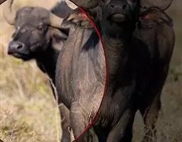 非洲野水牛:共有5个亚种。头体长2.1-3.4米,身高1-1.7米,体重300-900千克。胸膛宽…