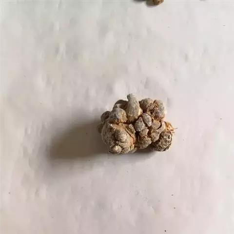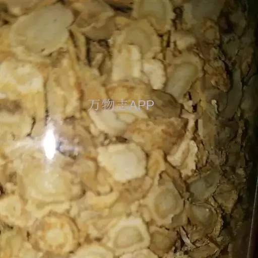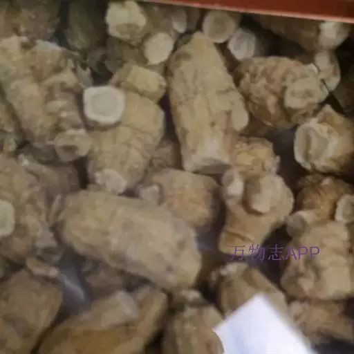 根茎长圆柱形或纺锤形,芦头多已除去;表面呈土黄色或黄白色,皮纹粗糙。横长皮孔粗而短;质地较脆而疏松,有放射状裂隙,皮部红棕色小点不明显;味淡,有甜味或豆腥味。