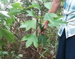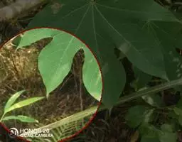 掌状5出复叶,通常3~4枚,轮生于茎端;叶柄长5~7cm;小叶片膜质,广卵形至倒卵形,长4~9cm,宽2.5~5cm,先端突尖,边缘具粗锯齿,基部楔形,最下两小叶最小;小叶柄长约1.5cm,最下二小叶柄较短或近于无柄。