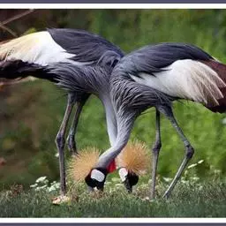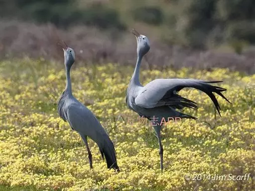 蓝鹤是南非的国鸟。然而最近,在为南非军队制服的盾形纹章选择新标志时,它败给了具有战士雄风的“秘书鸟”(鹭鹰)。蓝鹤同时也是先前的“南非鸟类学会”的会标。不过最近新成立的“南非鸟生活”组织,则以国际通用的燕鸥标志作为其会标。其实用蓝鹤作为象征南非的国鸟是再合适不过了。它个头够大,体形独特优美,外表安详而自信。尤其是当它偶尔像芭蕾舞者那样旋转着翩翩起舞时,或是快乐地“高歌”时,就更能充分地展示它超凡脱俗的特色。最重要的还是它所独具的土生土长的“地方性”。蓝鹤原本只分布在南非,唯独有一个小分支,远离它们南方的“表亲”,北上栖息在纳米比亚的埃托沙盐沼地(Etosha Pan)。蓝鹤也会季节性地跨越国界,飞到邻近的莱索托、斯威士兰、博茨瓦纳,甚至津巴布韦等国家,偶尔还会在这些地方筑巢。不过,可以肯定的是,99%的蓝鹤是以南非为家的。