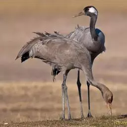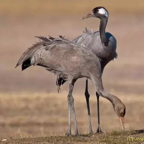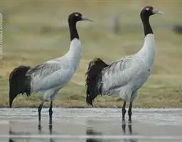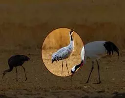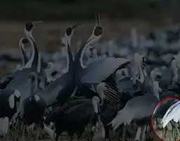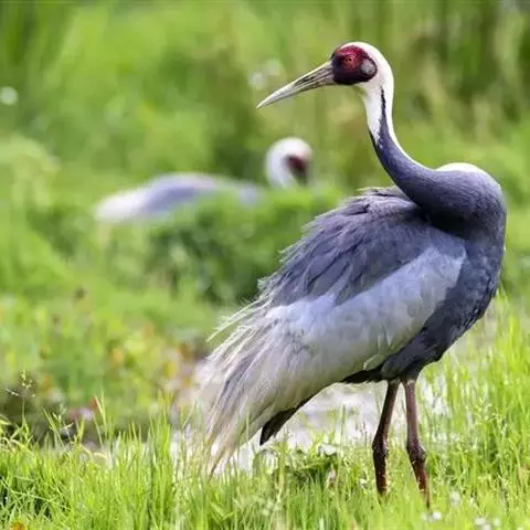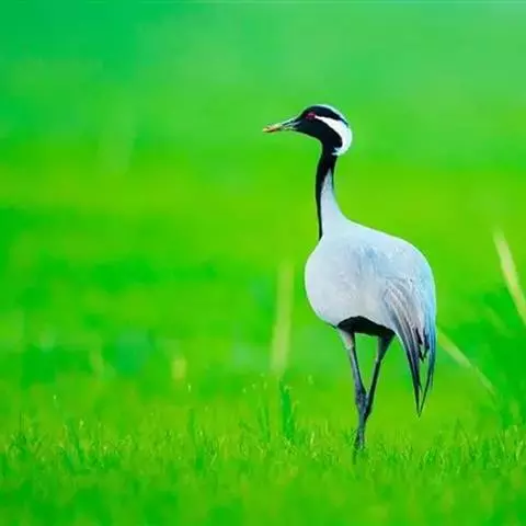蓑羽鹤大型涉禽,体长68~92厘米,是鹤类中个体最小者。通体蓝灰色,眼先、头侧、喉和前颈黑色,…