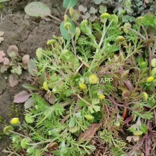 一年生小草本。茎具多数铺散的分枝,多少被淡褐色长柔毛。叶互生,二回羽状分裂,两面疏生长柔毛或几无毛;基生叶倒披针状长圆形,长3-5厘米,宽1-2厘米,有稍膜质扩大的短柄,一回裂片约5对,下部的.渐小而直展;中部茎生叶长圆形或椭圆形,长1.5-2厘米,宽0.7-1厘米,基部半抱茎;全部叶末次裂片多为浅裂的三角状短尖齿,或为半裂的三角状披针形小裂片,顶端短尖头。