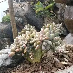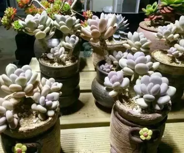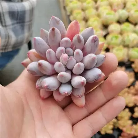 可以看出,鸡蛋美人对凉爽的气候有更大的需求,这就是为什么能大规模种植鸡蛋美人的只有高原地区(如云南)和北方的一些地区(如山东)。因此,这个品种不建议夏天高温时间持续很长的地区种植。除了这点,在栽培养护方面与其他景天科多肉植物无异。除了盛夏要适当遮阳、遮雨外,还要注意通风降温和把握浇水,炎热的天气甚至要断水。断水后的植物,会消耗底层的叶子为自己供应养分,不用太过担心植物干死,毕竟它肥厚的叶子是为了应对恶劣环境而生的。