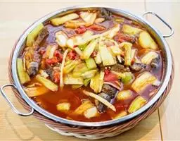 1.将山药刮去外皮,用清水洗净。将鸭梨、苹果剥去皮,切开,除去核,然后切成小叮将金糕瓜仁瓜条青梅均切成2分见方的小叮用水将葡萄干洗净,横切成两半。
