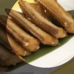 2、锅中放入足够多的油(能没过山药),烧至7成热时,放入山药段用中火炸至稍稍变黄捞出,沥干油。