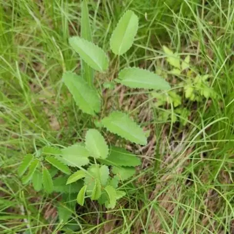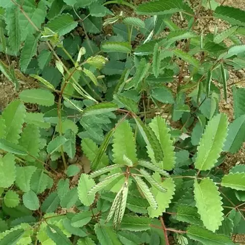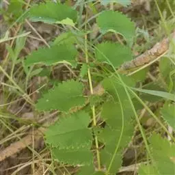 叶为羽状复叶,有小叶4-6对,叶柄有棱,无毛,小叶有柄,椭圆形或卵状椭圆形,基部心形至深心形,稀微心形,顶端圆形,边缘有粗大缺刻状急尖锯齿,上面暗绿色,下面绿色,无毛,茎生叶2-4,与基生叶相似,惟向上小叶对数逐渐减少;基生叶托叶膜质,黄褐色,无毛,茎生叶托叶草质,绿色,卵形,边缘有缺刻状锯齿。