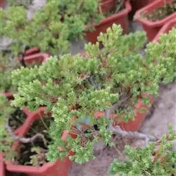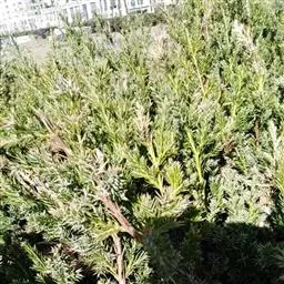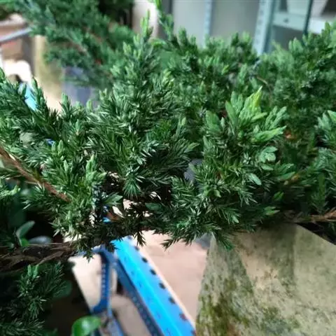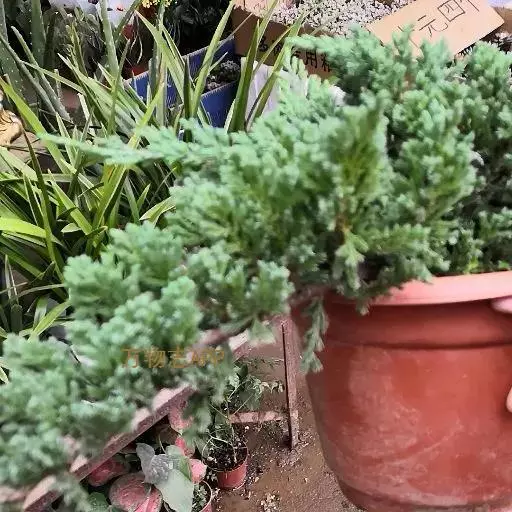 铺地柏是一种矮小的柏科圆柏属灌木,原生于日本南部。系柏科常绿匍匐小灌木,高达75厘米,冠幅逾2米。枝干贴近地面伸展,褐色,小枝密生。枝梢及小枝向上斜展。叶均为刺形叶,先端尖锐,3叶交叉互轮生,条状披针形,先端渐尖成角质锐尖头,长6-8毫米,上面凹,表面有2条白色气孔带,下面基部有二个白粉气孔,气孔带常在上部汇合,绿色中脉仅下部明显,不达叶之先端,下面凸起,蓝绿色,沿中脉有细纵槽。叶基下延生长;球果近球形,被白粉,成熟时黑色,径8-9毫米,有2-3粒种子;种子长约4毫米,有棱脊。匍匐枝悬垂倒挂,古雅别致,是制作悬崖式盆景的良好材料。