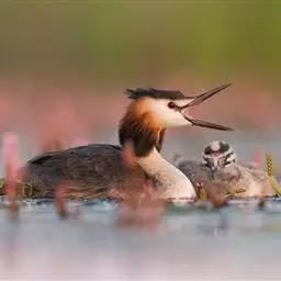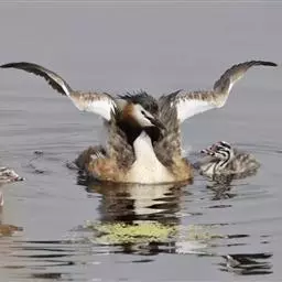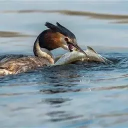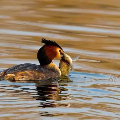 凤头鸊鷉:体长为50厘米以上,体重为0.5-1千克。前额和头顶部黑褐色,枕部两侧的羽毛往后延伸,…