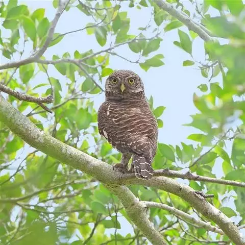 横斑腹小鸮:是鸱鸮科、小鸮属的一种鸟类。体长20厘米左右。面盘不明显,没有耳羽簇,皱领也不显著。…