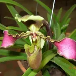 兜兰花比较雅致,色彩庄重,色及带有不规则斑点或条纹。花瓣较厚,花朵开放期比较长。属观赏类花草。