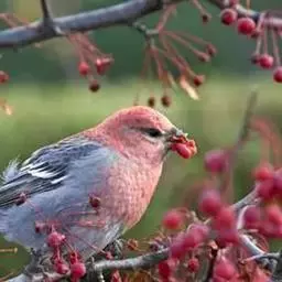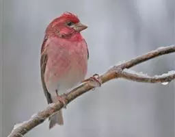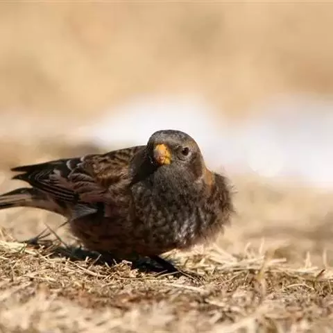 粉红腹岭雀(学名:Leucosticte arctoa):为燕雀科岭雀属的鸟类。体重25-34克,体长150-182毫米。是一种中等体型的深色岭雀。两翼及下体玫红色。东北亚种的雄鸟额、顶冠及脸灰;上背黄褐;上体深褐,沙色的羽缘成鳞状斑;两翼近黑而羽缘粉红;尾近黑而具白色羽缘;下体褐色,羽片中心粉红;冬季鸟的头顶、颈背及颈圈皮黄褐色。雌鸟较雄鸟色暗,两翼的粉红色仅限于覆羽。指名亚种成年雄鸟翼羽具宽阔的羽缘而使合翼时看似白色;体羽无粉红且腰及臀为浅色。与朱雀的区别在黄色的嘴较厚且头无粉红色。虹膜褐色;嘴黄色,嘴端黑色;脚黑色。