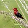 红梅花雀小型鸟类,体长9-10厘米。雄鸟通体朱红色,背、肩、胸等满布白色小斑点,…