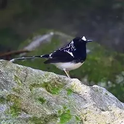 斑背燕尾是鹟科、燕尾属中型鸟类,体长24-25厘米。额至头顶前部白色,其余头、颏、喉、胸黑色,…