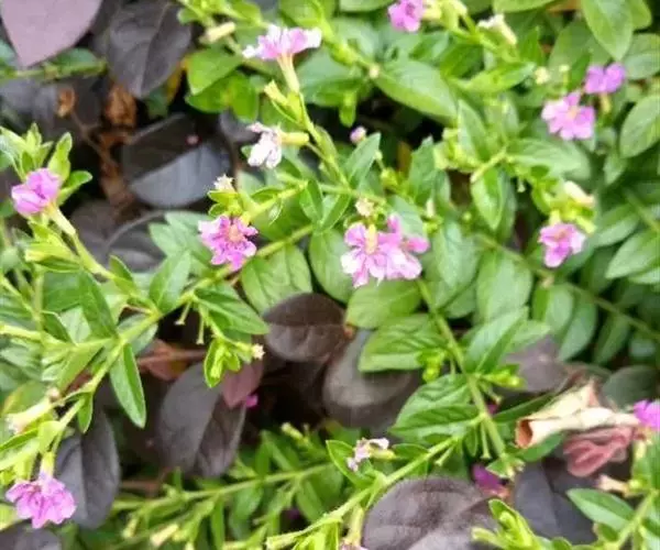 萼距花(Cuphea hookeriana Walp.)千屈菜科、萼距花属灌木或亚灌木状,高30-70厘米,直立,粗糙,被粗毛及短小硬毛,分枝细,密被短柔毛。叶薄革质,披针形或卵状披针形,稀矩圆形,顶部的线状披针形,顶端长渐尖,基部圆形至阔楔形,下延至叶柄,幼时两面被贴伏短粗毛,后渐脱落而粗糙,矩圆形,深紫色,波状,具爪,其余4枚极小,锥形,有时消失;突出萼筒之外,花丝被绒毛;子房矩圆形。