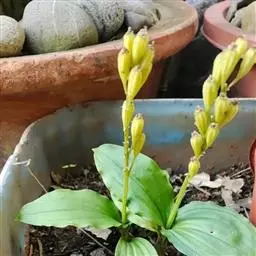 云南石仙桃:根状茎匍匐、分枝,粗4-6毫米,密被箨状鞘,通常相距1-3厘米生假鳞茎;假鳞茎近圆柱状…