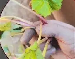绑蔓、去卷须当新梢长至40厘米左右时,需及时引缚在架面上,以利通风透光和避免被风吹折断。一般水平引缚能缓和生长的极性,控制新梢徒长,用于一般结果枝和发育枝;而垂直引绑有促进生长的作用,适用于延长枝和弱枝的处理。葡萄绑蔓采用“oo”字形绑缚,以防枝条在铁丝上擦伤或磨断。结合夏剪可随时剪除卷须。葡萄主侧蔓和技组上架的引绑:在春天芽眼刚萌动时,喷完广谱杀菌剂(如1-3波美度石硫合剂)之后,第二天就要引绑上架。2-3年生主蔓引绑时,将基部向生长方向压弯做形,以免上下架或埋土防寒压断。因此,将主蔓向前压弯,与地面呈35度角,用木钩或铁钩固定,然后再以45度角将主蔓或例蔓均匀地绑在架面上,使主蔓基部形成“鹅脖”弯状。篱(立)架上的结果母枝,要采用斜式或弓形引绑;水平立架上的结果母枝则用水平式引绑,将技组分布在一条铁丝上。引绑材料用马蔺、稻草、麻绳或塑料条等均可。引绑时要结实牢固,但绑绳要留出枝蔓生长的空隙,以免影响加粗生长。