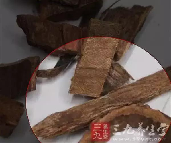 ⑥木薄壁细胞长方形壁稍厚,连珠状,单纹孔形状大小不一。此外,有石细胞、木纤维及木栓细胞。