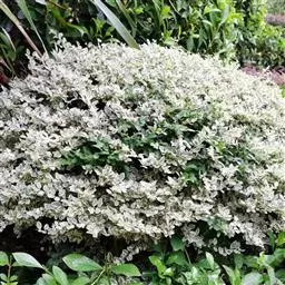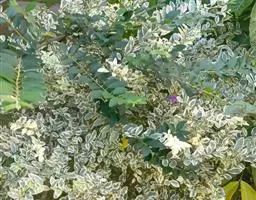 银姬小蜡(Ligustrum sinense 'Variegatum')别称:花叶女贞,是木犀科、女贞属常绿小乔木,分布于日本、朝鲜半岛、中国辽宁及其以南广大地区。风土适应性极强。为阳性植物,喜强光,极为耐寒、耐旱、耐瘠薄、耐修剪。耐移植,休眠期和雨季可裸根移栽,成活容易。繁殖可采用常规的扦插法,于秋天或早春进行成活率较高。已引种到辽宁沈阳、河北石家庄、陕西西安、上海及云南等地。