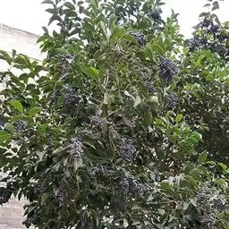 水蜡树,木樨科女贞属落叶多分枝灌木。小枝被微柔毛或柔毛;叶长椭圆形无毛或被柔毛;花序轴、花梗、花萼均被柔毛;果近球形或宽椭圆形,成熟时紫黑色;花期5~6月,果期8~10月。水蜡树原产于中国,分布于黑龙江、辽宁、浙江、山东及江苏等地,在日本和朝鲜也有分布。常生于山坡、山沟石缝、山涧林下和田边、水沟旁。水蜡树喜光稍耐荫较耐寒,耐干旱耐瘠薄,喜肥沃湿润土壤。主要繁殖方式为播种、扦插和分株繁殖。水蜡树的果实可补肝肾,强腰膝,主治阴虚内热、头晕、目花、耳鸣、须发早白;其树皮可强筋健骨,主治腰膝酸痛、两脚无力、水火烫伤。水蜡树苍劲古雅,形态多姿,叶片色泽光亮,耐修剪,易于造型,可制作枯干式、直干式、大树型、悬崖式等多种造型的盆景。其还可饲养蜡虫取蜡,据《本草纲木》记载:“水蜡树,叶微似榆,亦可放虫生蝠,甜槠树亦可放蜡”。