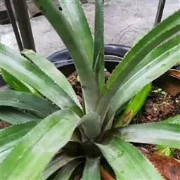 菠萝种植园 菠萝有它自己的特殊生长习性。绝大多数菠萝具有莲座状叶丛。叶丛基部形成一个能蓄水的叶筒。这类菠萝生长发育所需的水分,不是贮存于叶肉内,而是贮存于簇生叶丛中央生长点处所自然形成的凹槽内(即特有的莲座状叶筒)生长季节除需经常浇水以保持盆土湿润外,还必须经常往叶筒内浇水,使叶筒内贮有充足的水分,这样才能使其茁壮生长,这是凤梨的一种特殊习性。