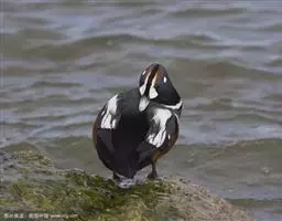 花脸鸭:颈及尾下覆羽绒黑,脸两侧棕白,眼下和颈基各贯以黑纹,翼镜铜绿。