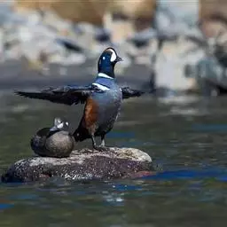 野鸭是水鸟的典型代表,野鸭是绿头鸭(mallard)在北半球的俗名。野鸭属鸟纲、雁形目、鸭科;其数量非常多,是多种野生鸭类的通俗名称,有十余个种类。野鸭能进行长途的迁徙飞行,最高的飞行速度能达到时速110公里。雌野鸭体型较小,体长50~56厘米,体重约1千克;雏野鸭全身为黑灰色绒羽,脸、肩、背和腹有淡黄色绒羽相间,喙和脚灰色,趾爪黄色。
