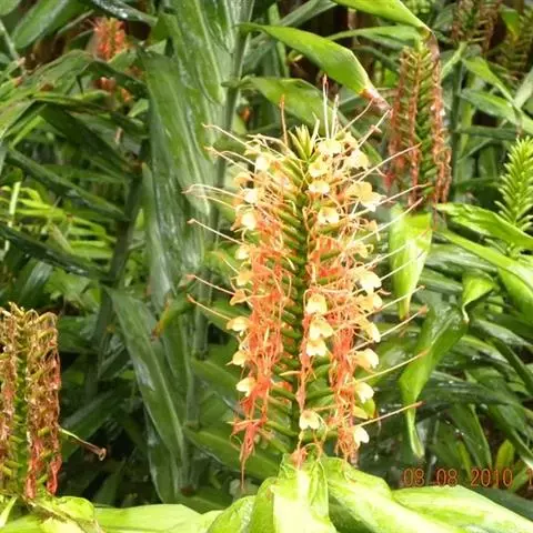 毛姜花(学名:Hedychium villosum Wall.)是姜科、姜花属陆生或附生草本植物,茎高可达2米;根茎块状。叶片长圆形或长圆状披针形,两面均无毛或在叶背的中脉上散生短柔毛;叶舌薄膜质,披针形,穗状花序密生多花,花序轴多少被短柔毛;苞片长圆形,花萼被金黄色绢毛;花冠白色,裂片线形,反卷;花丝紫红色,花药箭头状,蒴果卵形,3-4月开花结果。