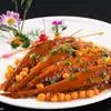 干烧小黄鱼 是由黄鱼等制作的食物,配料是葱、姜、蒜。