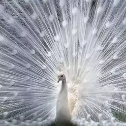 白孔雀,脊椎动物,鸟纲,雉科。其全身洁白无瑕,羽毛无杂色,…