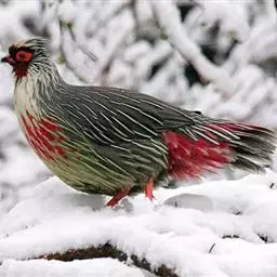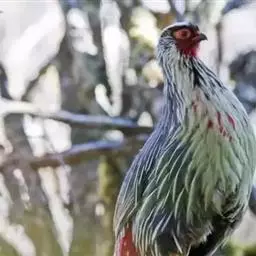 血雉雉科血雉属鸟类,别名血鸡、松花鸡,血雉的雄鸟大覆羽、尾下覆羽、尾上覆羽、脚、头侧、腊膜为红色,…