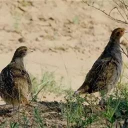 体大的灰褐色鹑类。胸灰色具黑色细纹。与相似种类四川雉鹑不同处在于栗色喉块外缘近白。有猩红色眼周裸皮。…