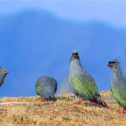 白颈长尾雉:大型鸡类,体长81厘米,体型大小和雉鸡相似。雄鸟头灰褐色,颈白色,脸鲜红色,其上后缘有…