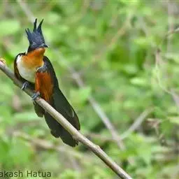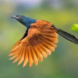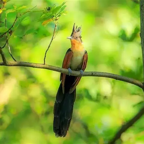 红翅凤头鹃:体长约38厘米,顶冠及凤头黑色,具显眼的直立凤头,背及尾黑色而带蓝色光泽,翅栗红色,…