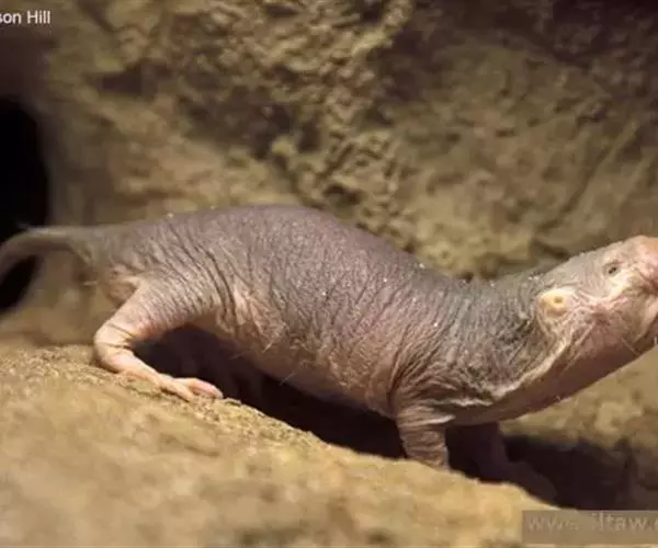 裸鼹鼠是哺乳动物的杰出代表,其种群生活方式像蜜蜂、蚂蚁,和蚂蚁、蜜蜂、黄蜂以及白蚁一样有组织。但是,裸鼹鼠比它们个头更大,长得也更难看。裸鼹鼠表面皮肤上几乎无毛,并完全没有疼痛感。这些古怪的动物生活在地下巢穴里,数量可多达100只。裸鼹鼠用不成比例的大门齿挖洞,这些牙齿位于嘴唇前面,这样,它们便不会吞下泥土。裸鼹鼠的寿命可达到30岁,是其它鼠类生物寿命的10倍。其身体中具有癌症的天然抗性物质,为此裸鼹鼠成为健康科学家们的最爱。