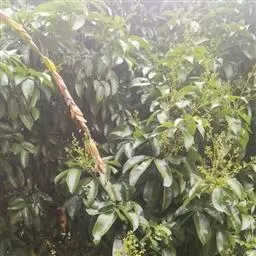 荔枝霜疫霉病,属真菌病害,主要危害果实,也为害花穗和嫩叶,病部呈水渍状,褐色,上生白霉状病原菌,致使果实腐烂脱落,花果腐烂或干枯。连续数天下雨,天气湿度高,气温22-25℃,通风透光差的果园发病迅速,特别是在果子着色后,发病更重。