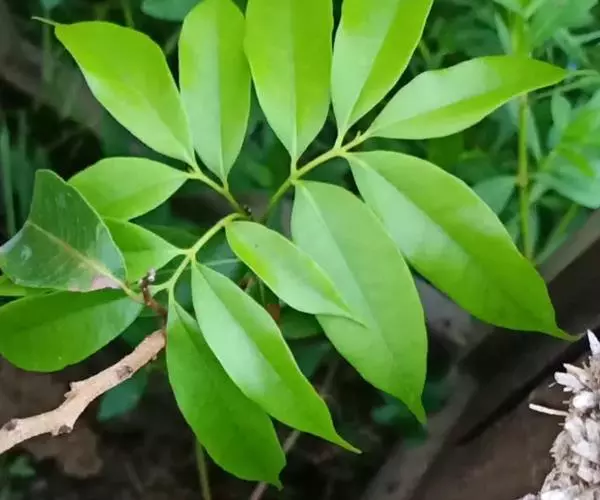 叶连柄长10-25厘米或过之;小叶2或3对,较少4对,薄革质或革质,披针形或卵状披针形,有时长椭圆状披针形,长6-15厘米,宽2-4厘米,顶端骤尖或尾状短渐尖,全缘,腹面深绿色,有光泽,背面粉绿色,两面无毛;侧脉常纤细,在腹面不很明显,在背面明显或稍凸起;小叶柄长7-8毫米。