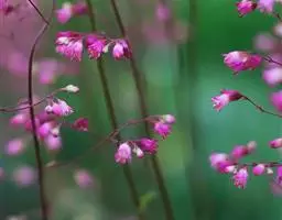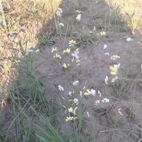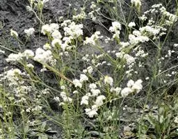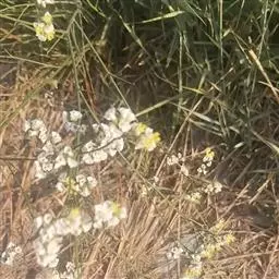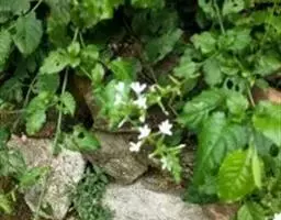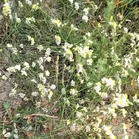 水晶草花细小纤弱,花朵约3毫米大,有5个花瓣,花开呈五角形。花蕊黄色,花瓣薄如纱,晶莹透亮,似水晶一般,闻起来略有清香。她先开黄花,后渐渐变白,一般7-9朵花簇生在一起。花期在5-7月,花开时候,黄白相间,尤其在微风下,有如繁星闪动,挂满天边,如果远眺一瞥,又仿佛朵朵云霞一片。水晶草生命力极强,易自播繁殖。