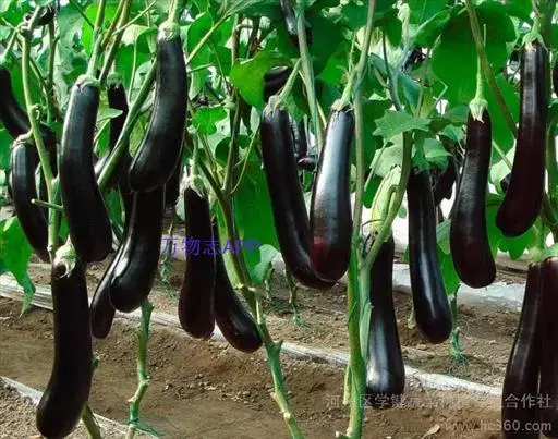 一般栽培供食用的有长形及圆形的为(Solanum melongenaL. var.esculentumNees),但一种长形基部弯扭的为(Solanum melongenaL. var.serpentinumBailey)。