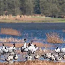 赤颈鹤为留鸟,栖息于开阔平原草地、沼泽、湖边浅滩,以及林缘灌丛沼泽地带,有时也出现在农田地带。